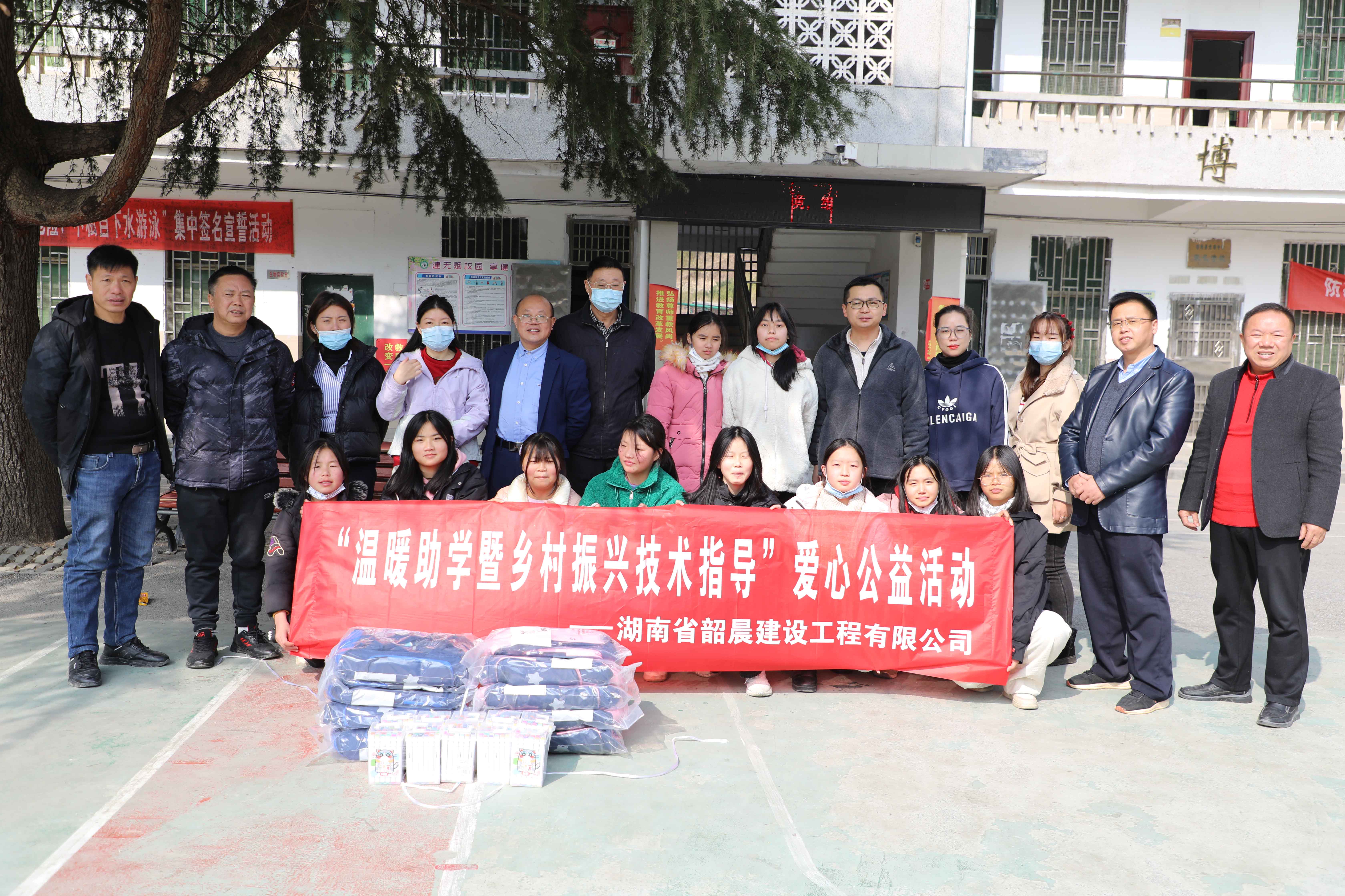 “溫暖助學(xué)暨鄉(xiāng)村振興技術(shù)指導(dǎo)”愛心公益活動在桂陽順利開展2023年1月6日,“溫暖助學(xué)暨鄉(xiāng)村振興技術(shù)指導(dǎo)”愛心公益活動在桂陽順利開展,我公司湖南省韶晨建設(shè)工程有限公司及湖南省環(huán)境治理行業(yè)協(xié)會常務(wù)副會長胡蕭、秘書長張敏杰和愛心企業(yè)代表參加了本次愛心公益活動,隨行專家有中南林業(yè)科技大學(xué)教授傅曉華和長沙礦山研究院副院長張克仲。當(dāng)天上午,一行人來到了桂陽縣蓮塘鎮(zhèn)光明中學(xué),給學(xué)生代表發(fā)放了書包、水彩筆和助學(xué)金,讓這些學(xué)子們感受到來自社會對他們的關(guān)愛。